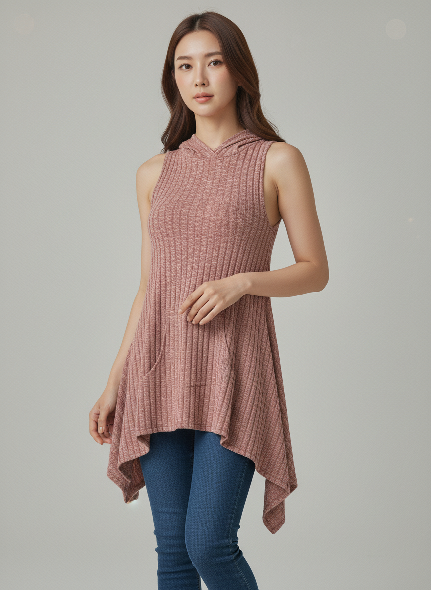 Sleeveless Hooded Knit Tunic Top – Pink
